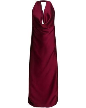Three-Quarter Sleeve Boat-Neck Midi Dress - Purple