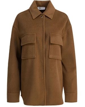 Patch-Pocket Collared Shirt Jacket - Brown