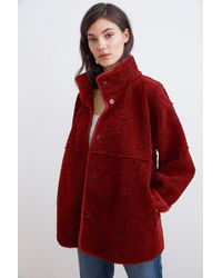 Albany Reversible Lux Sherpa Mock Neck Coat In Red