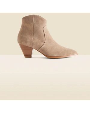 Taupe Suede Western Stack Heel Ankle Boots - Natural