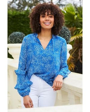 Cotton Dobby Spot Ruffle Sleeve Shirt - White