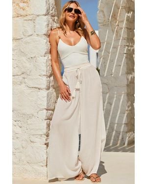 Ivory Metallic Stripe Wide Leg Beach Trousers - White