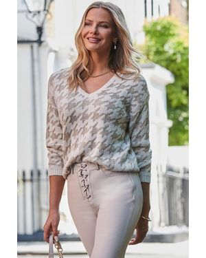 Houndstooth Print Metallic Detail Jumper - Natural