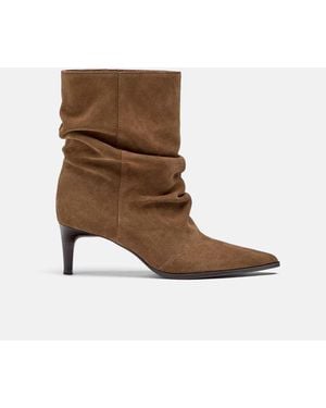 Slouchy Cowboy Leather Ankle Boots - Brown