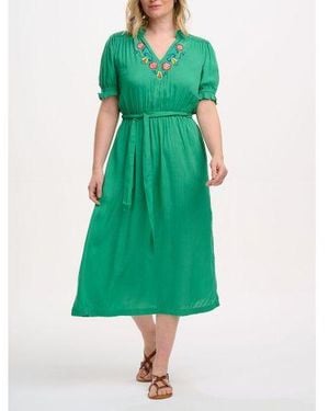 Folk Floral Embroidery Carlota Midi Dress - Green