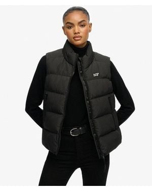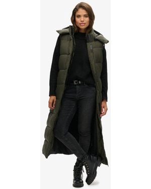 Classic Logo Badge Longline Hooded Puffer Gilet - Black
