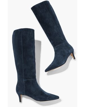 Perla Tall Suede Block Heel Boots- Extended Calf - Brown