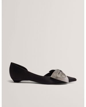 Crissly Rhinestone Bow Satin Pointed Kitten Heels - Black