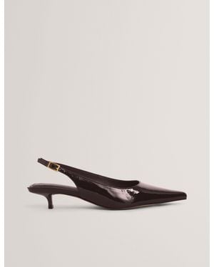 Kitiy Patent Leather Slingback Kitten Heel Shoes - Natural