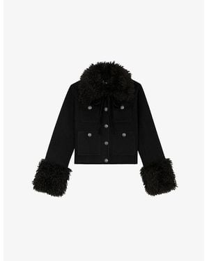 Sherpa-Collar Patch-Pocket Wool-Blend Jacket - Black