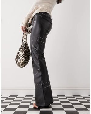 Low Rise Leather Trousers With Studs - Black