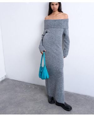 Knitted Bardot Maxi Dress - Blue