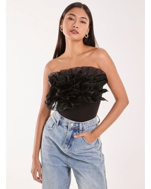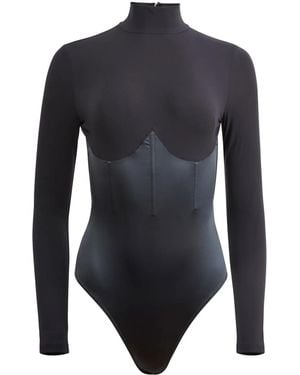 Corset Style Sweetheart Neck Mesh Bodysuit - Black
