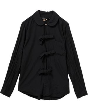 Ruffled Peter Pan Collar Shirt - Black