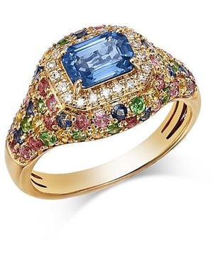 Emerald, Sapphire & Diamond Pave Multirow Ring - Metallic