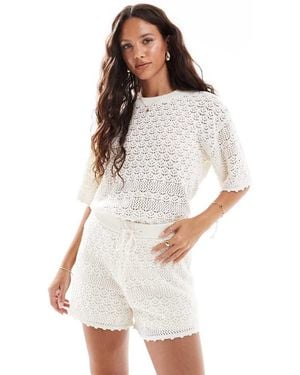 Crochet Knitted Shorts Co-Ord - White