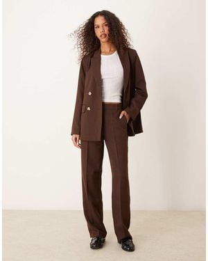 Pleated Wide Leg Tailored Trousers Co-Ord - Natural