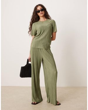 Wide Leg Plisse Trouser Co-ord - Green