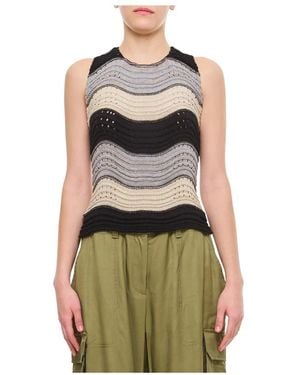 Discover the eclectic charm of VITELLI tops, where sustainability meets artistry. Each piece, from the distinctive two-tone knitted tops to the innovative expandable tank tops and textured jacquard polos, reflects a commitment to regenerated and high-quality yarns. The line-up features versatile hues with pieces like the Sleeveless Top - Black and T-shirts in subtle pink and green, balanced by expressive items such as the Cosmic Butterfly Camisole. VITELLI's use of linen blends and raw-cut finishes showcase their expertise in creating designs that are both contemporary and rooted in tradition. Effortlessly blending the distinguished 'Doomboh Patch Worker' shirt with the edgy Distressed-Effect series, this collection marries practical appeal with the enigmatic allure of the 'Wave Jacquard Crop Top', ensuring a unique wardrobe experience for those who value craftsmanship and thoughtful fashion.
