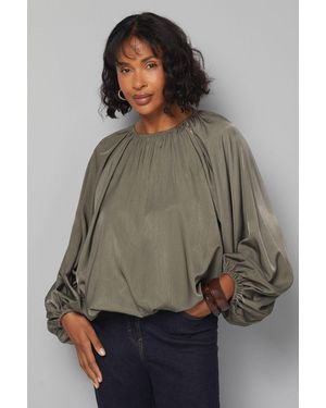 Gathered Puff Hem Blouse - Grey