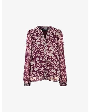 Leopard-Print Long-Sleeve Pleated Woven Shirt - Pink