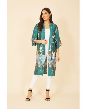 Women's Yumi Green Floral Bird Belted Midi Shirt Dresses