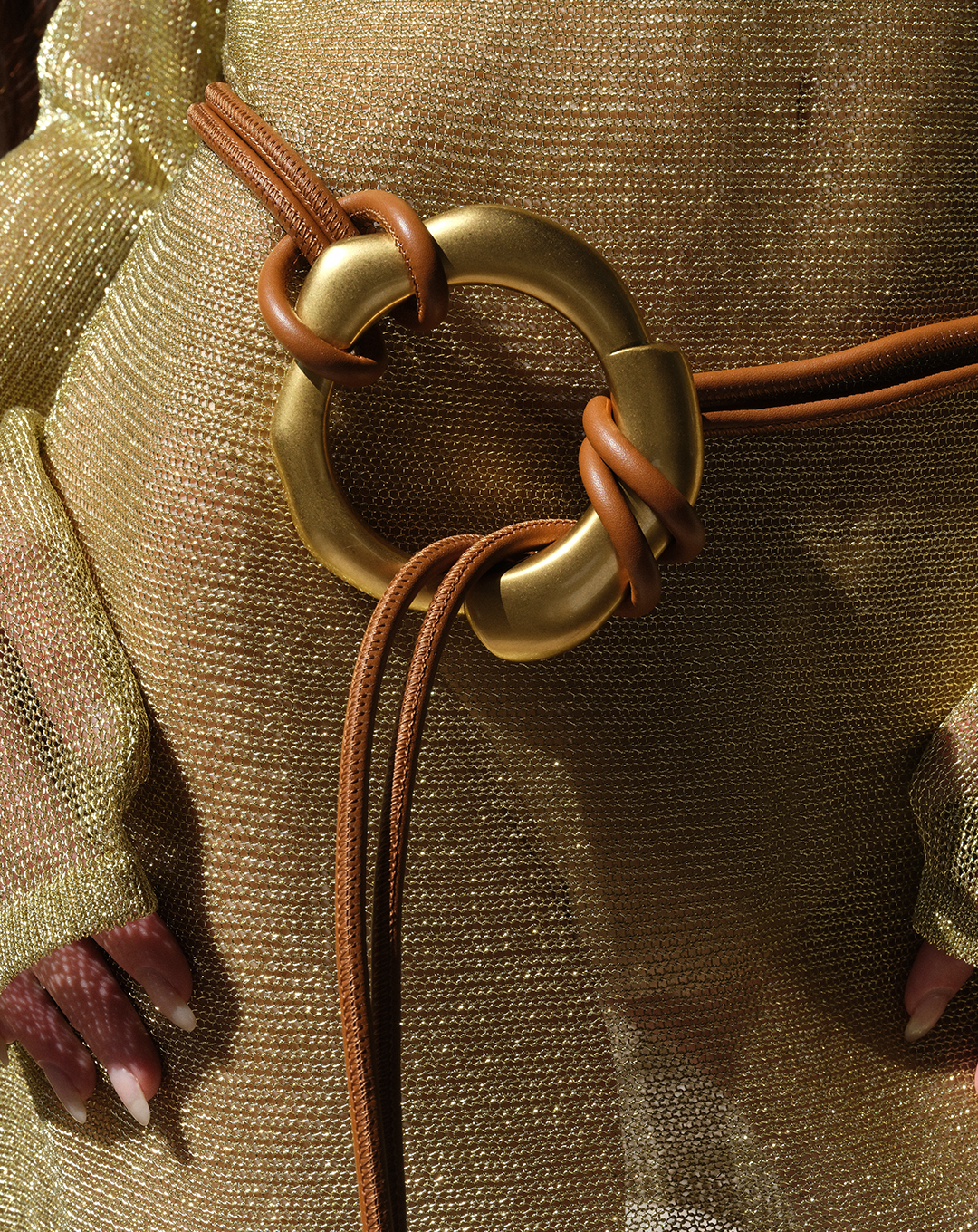 Minimal effort, maximum impact. Gold hardware — on sandals, eyewear, belts, or jewelry — adds a polished punctuation mark to even the most basic outfit. This isn’t about high shine or high drama; think brushed finishes, molten hoops, sculptural rings. The kind of detail that catches the light without shouting for attention. A pair of gold-framed sunglasses or a barely-there chain worn against sun-kissed skin has a transformative effect.